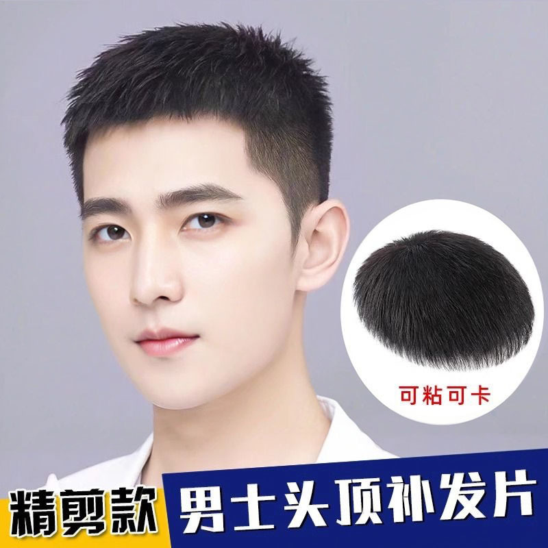 ファンシーシルクウィッグ、メンズウィッグ、人毛増毛パッド、ふわふわ両側高頭蓋、目に見えない補充ヘア