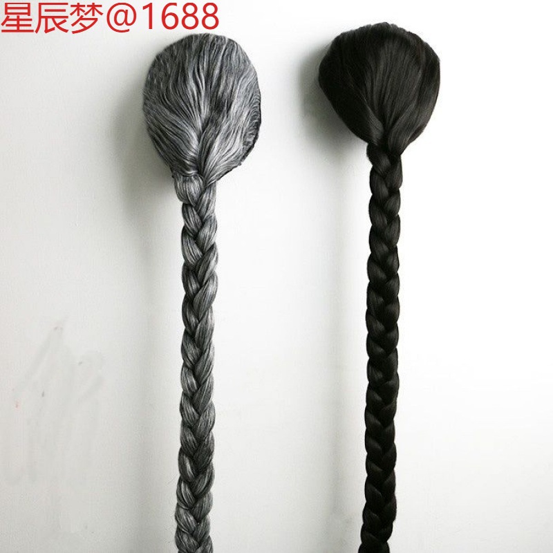 男性用コスチュームウィッグ、清朝の大きな三つ編み、パフォーマンス撮影、清朝の偽三つ編み、清朝の男性用三つ編みヘッドギア、Hun Yiji