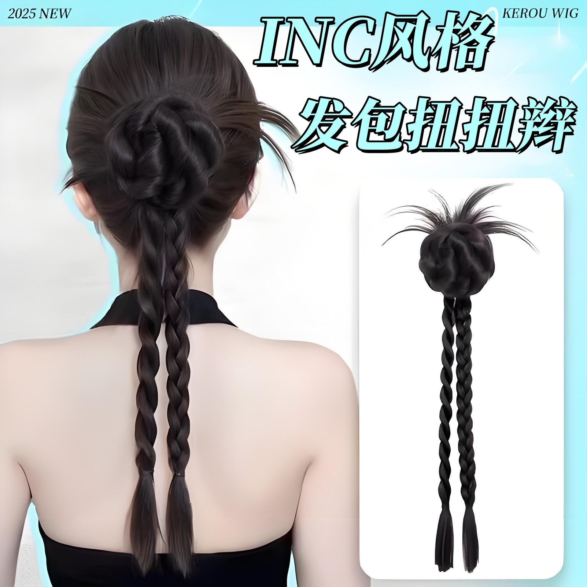 鶏の巣の団子の頭のかつらはギャルの頭をつかんで飾ります。