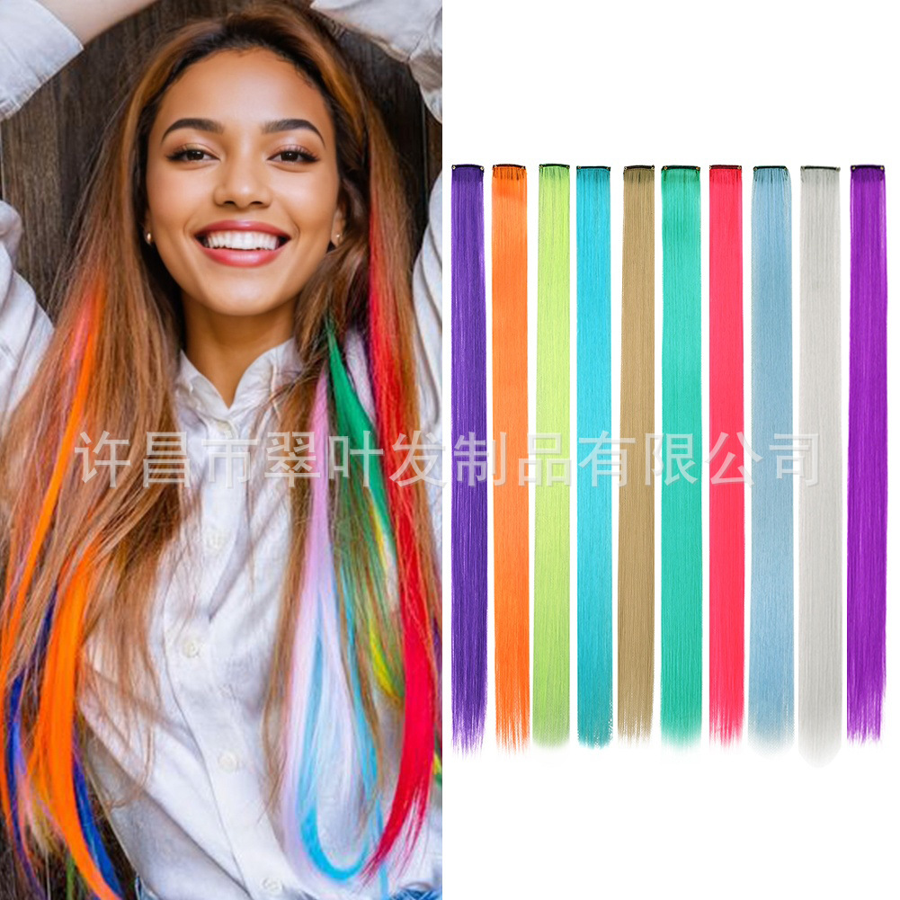 カラフルな耳掛け染めウィッグ、マルチカラーのワンピース、シングルカード、ロングストレートヘア、海外卸売、芸能人同風、ハイライト