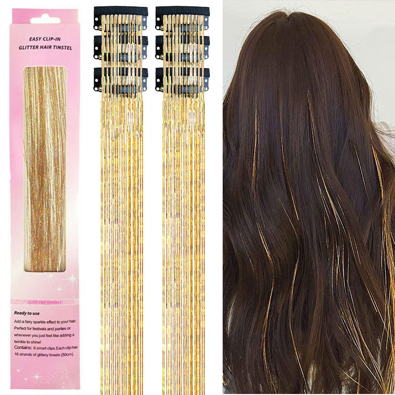 6点セットのtinsel hairレーザー金糸キラキラ光る金銀糸ギフトボックスbbクリップ単カードかつら