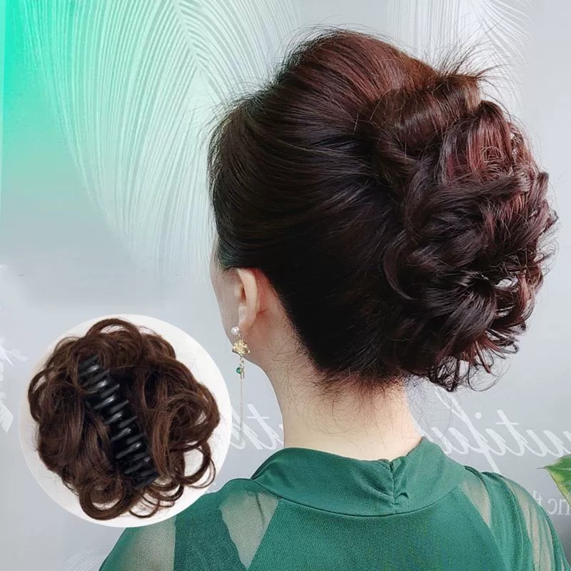 鳥の巣の団子の頭のかつらの髪の輪の女性は自然に勝手に収縮します。