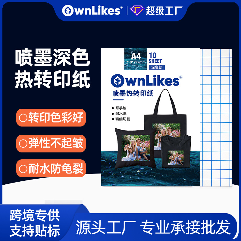 クロスボーダー専用ダークカラーインクジェット熱転写紙a4カット可能耐水洗いtシャツ熱転写紙転写紙卸売り