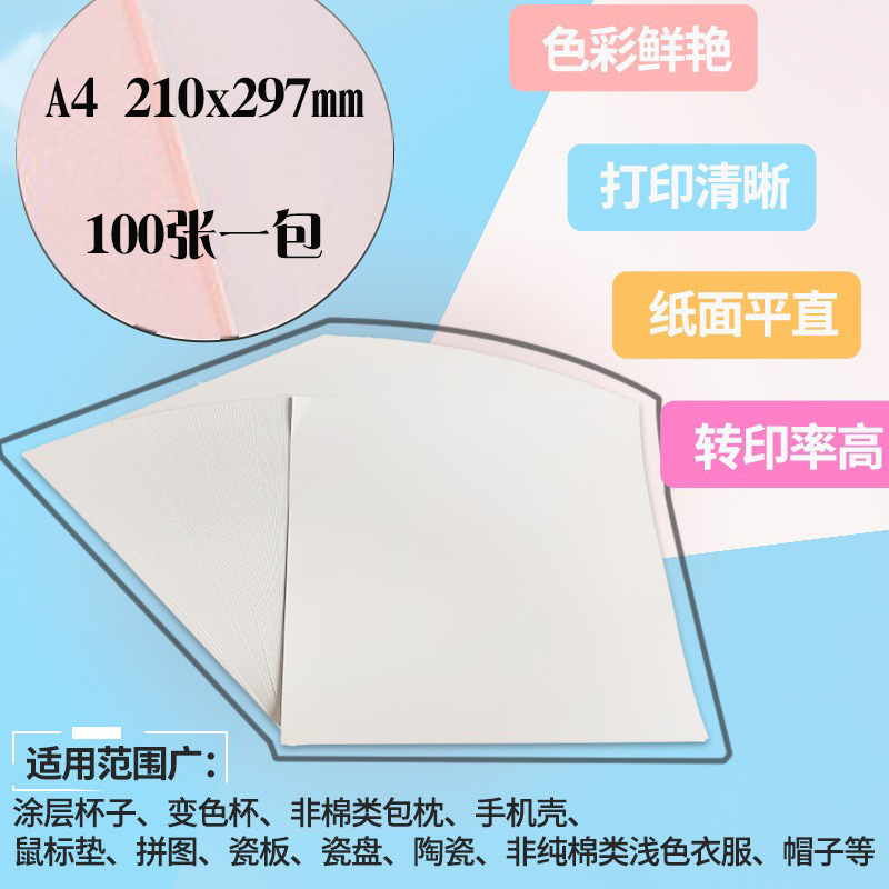 A4熱昇華ピンク転写紙コーティングカップパズル熱転写紙非純綿tシャツ明るいドライプリント紙A3