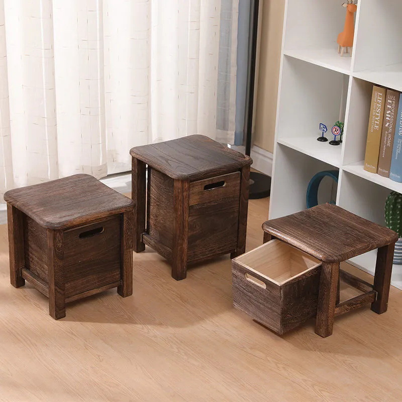 家庭用スツール積み重ね可能な無垢材ラウンドスツールジェンガ新しい中国風の低スツールプーリー木製スツールキッチンレストランベンチ