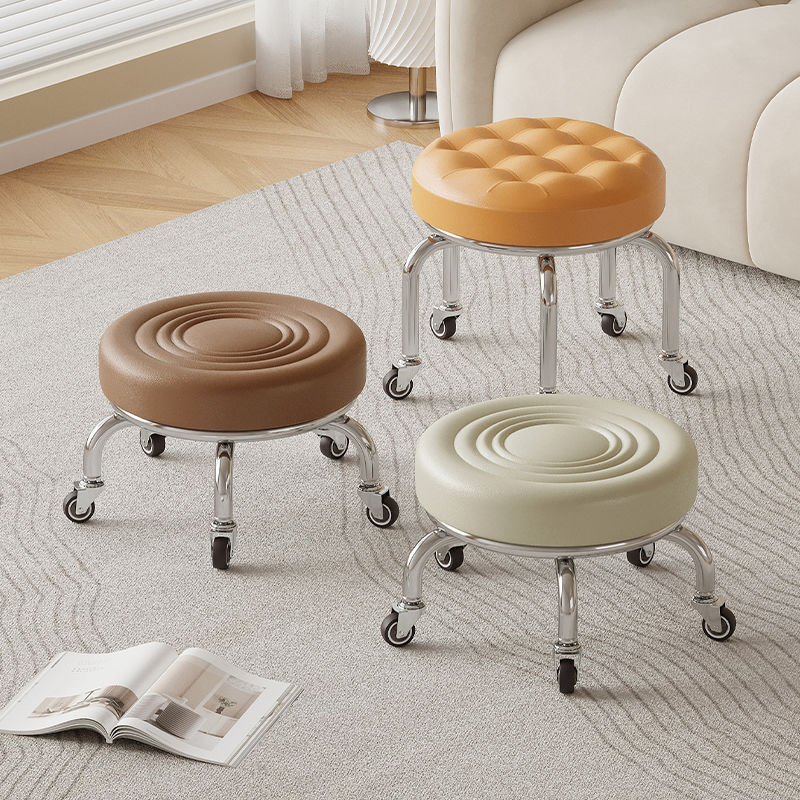 ユニバーサルホイール小さなスツールリビングルームプーリーロースツール2025新しい家庭用可動靴交換スツール分解エクスプレスラウンドベンチ