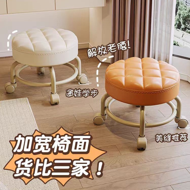 ユニバーサルホイール小さなスツールリビングルームプーリーロースツール2025新しい家庭用可動靴交換スツール分解エクスプレスラウンドベンチ