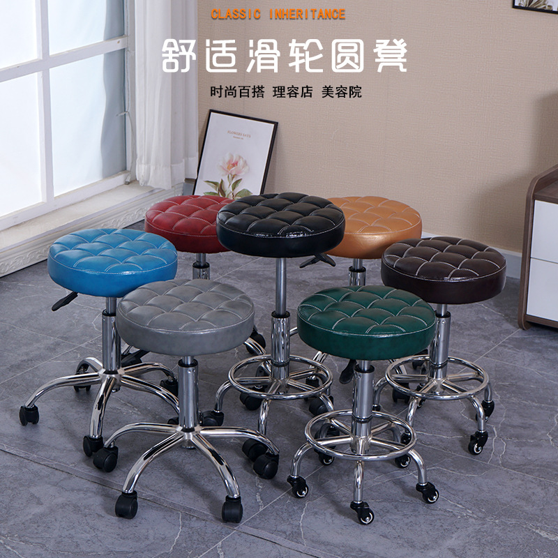 ビューティースツールユニバーサルホイールスライディングラウンドスツール回転昇降小さなスツール理髪店ビューティーサロンチェアバーチェア回転椅子