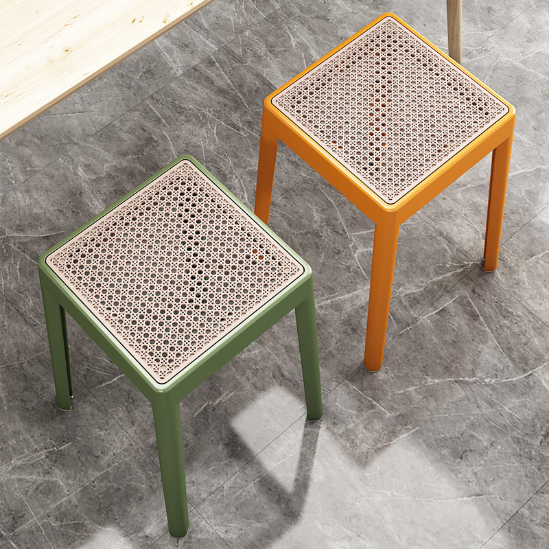 シンプルな模造籐の家庭用正方形スツールプラスチック厚みのある積み重ね可能なリビングルームのダイニングテーブルハイスツール大人のスペアチェア