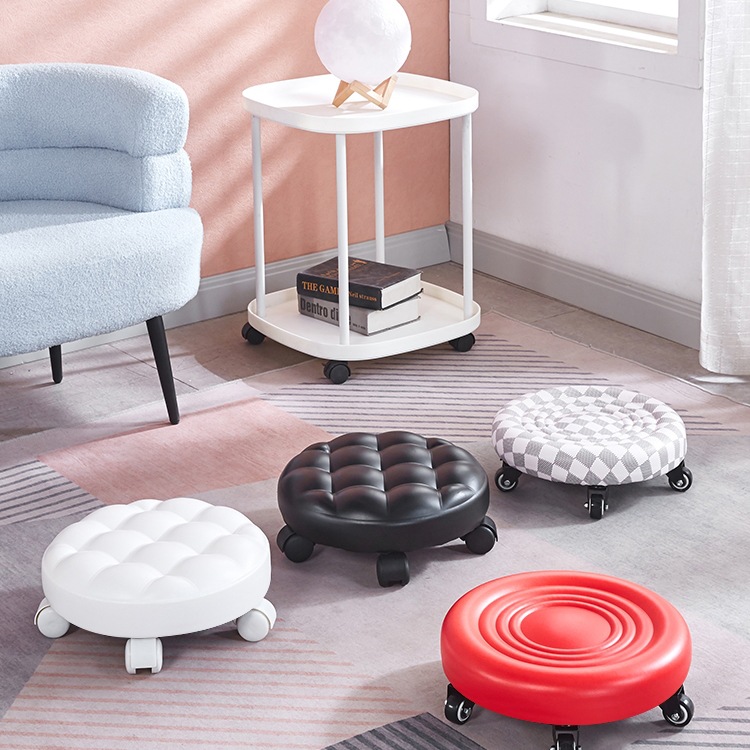 ユニバーサルホイールスツール、プーリー、ロースツール、家庭用コーヒーテーブル、車輪付き小さなソファ、靴交換スツール、可動式怠惰な丸いスツール