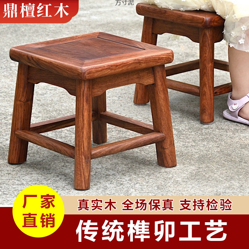 ハリネズミマホガニースツール大人の低スツール正方形スツール家庭用耐久性のあるローズウッド椅子バフラワー正方形卸売