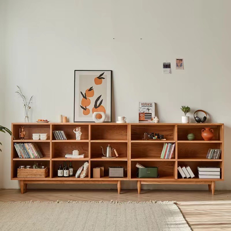 北欧の全実木の格子のタンスの桜の木の本棚の自由な組み合わせの着地の低い本棚の客間の収納棚のロッカー