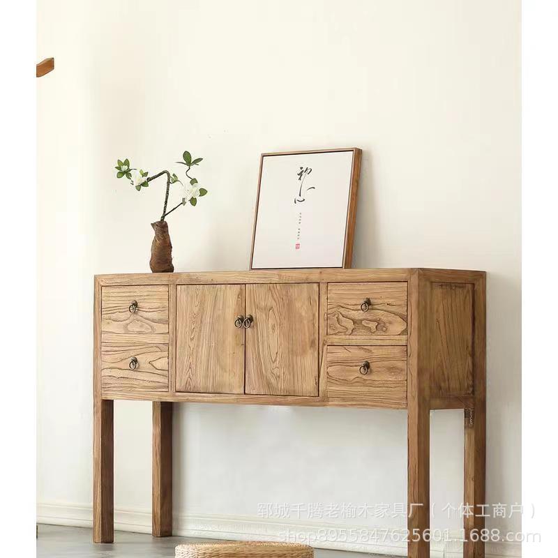 レトロな木のサイドキャビネット家庭用玄関壁に寄りかかって高い足の収納棚レトロな古い楡の収納棚