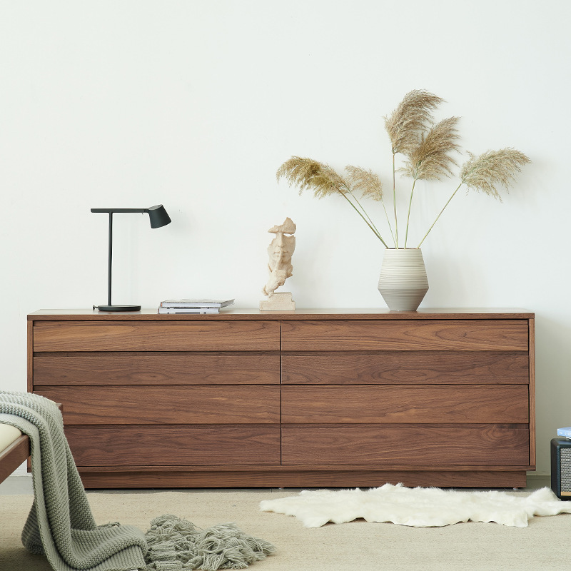 北欧の実木オーク材黒胡桃八斗キャビネットサイドキャビネットシンプルテレビキャビネット日本式収納環境保護ベッドテールロッカー