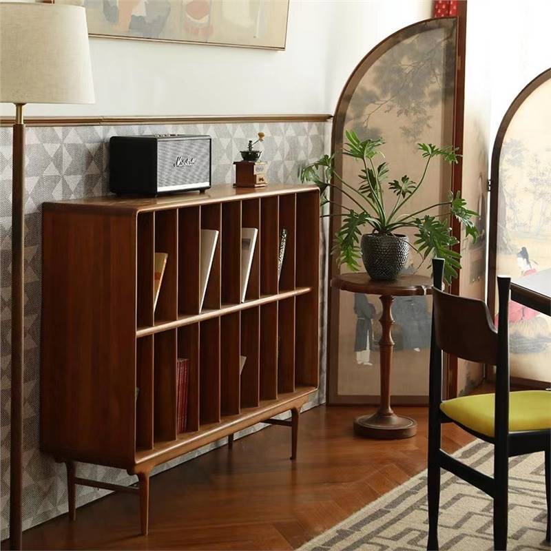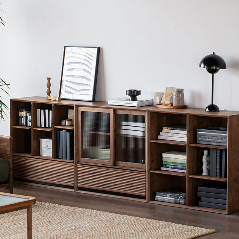 日本式組み合わせ黒胡桃木低本棚ロッカー自由組み合わせリビング収納キャビネット