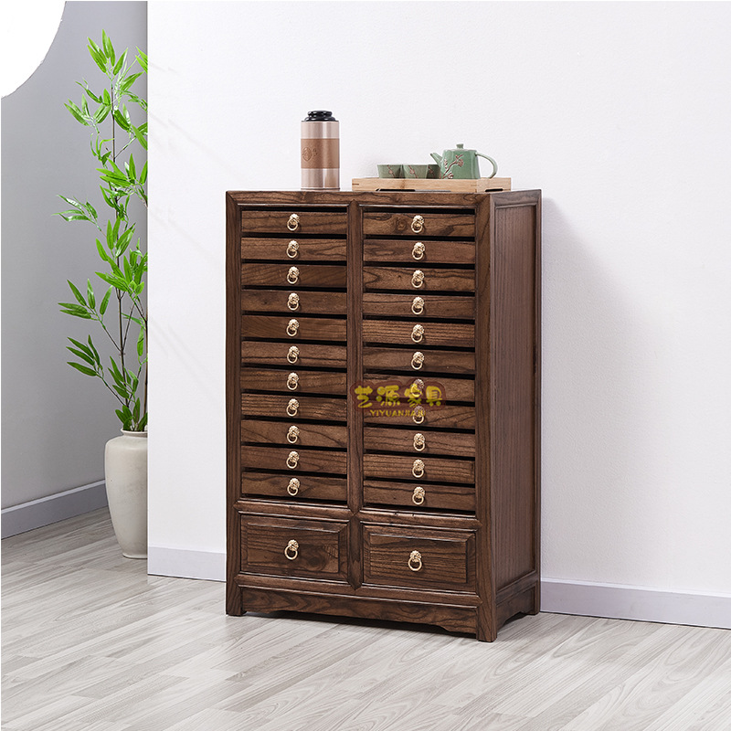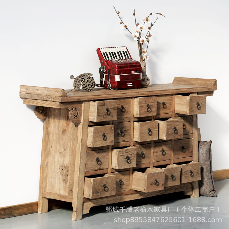 老楡木斗戸棚復古多機能床置き戸棚楡木漢方薬多格ロッカー客間サイドキャビネット