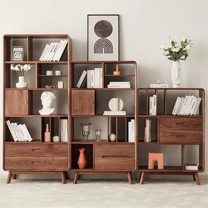 北米黒胡桃木本棚客間壁全体に実木着地本棚桜木本棚原木置物棚を組み合わせる
