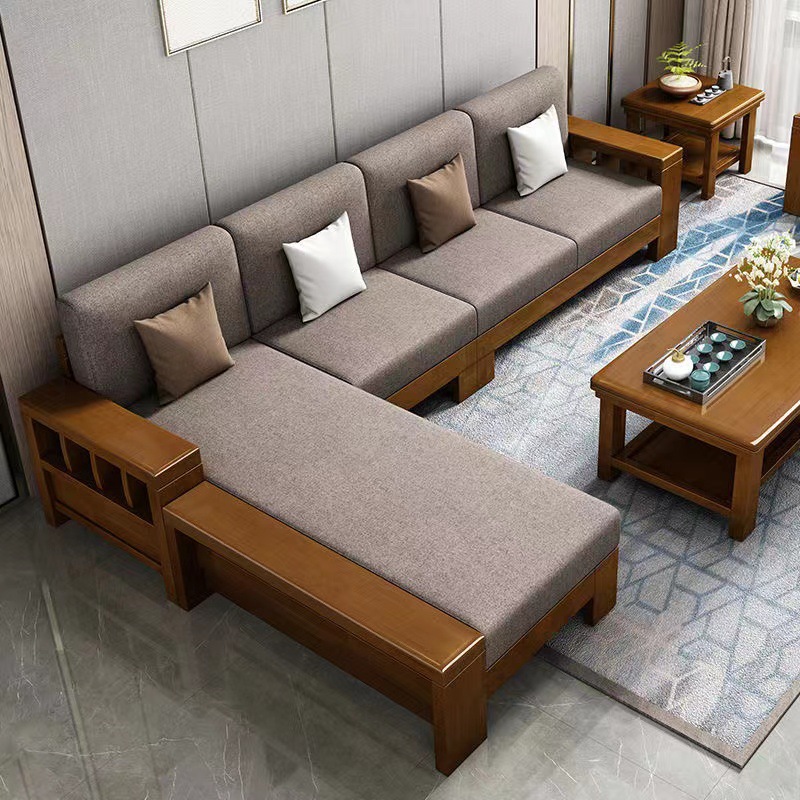 佛山の新しい中国式の実木のソファーの組み合わせは簡単で、現代の新しい中国式の角の実木のソファーは家具のソファーの椅子を敷きます。