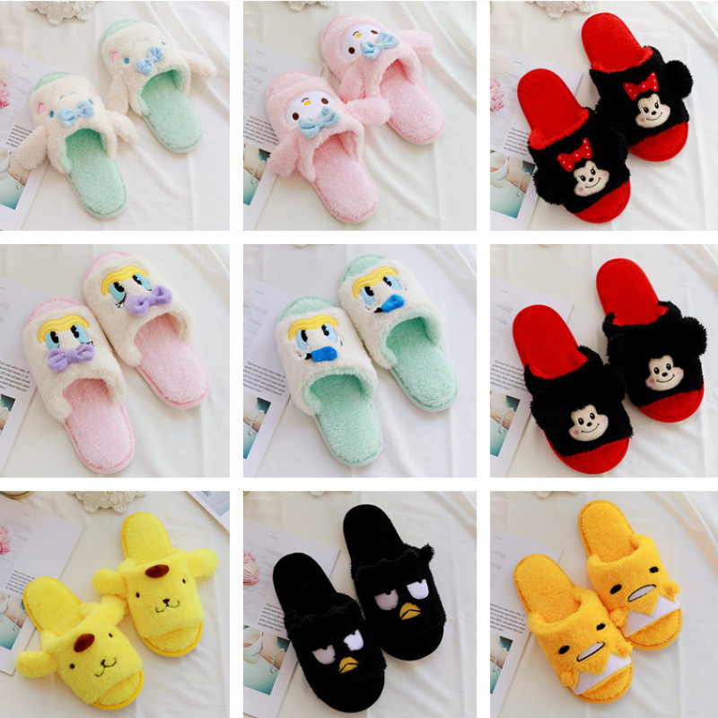 新しい漫画かわいい日本の女の子のハートホームスリッパ春と秋の韓国ソフト底床屋内魚の口スリッパ