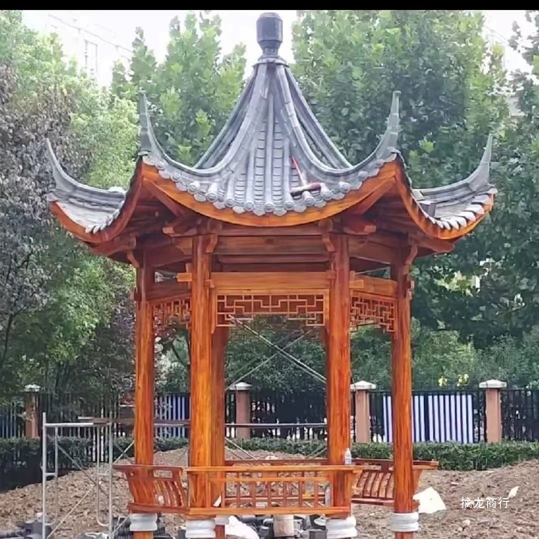 工場直販屋外防腐木材ヴィラ中庭アンティーク六角形四隅パビリオン長廊下レジャー木製ハウス門