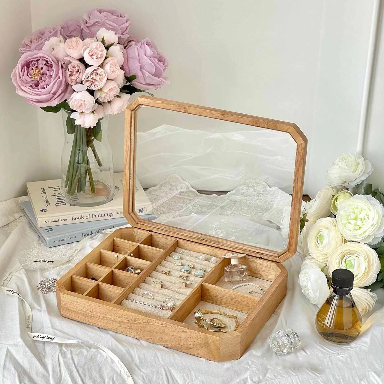 クロスボーダー卸売透明オーク材アクセサリーボックス収納ボックスジュエリーボックスリングボックスクリエイティブシンプル風木製ジュエリーボックス