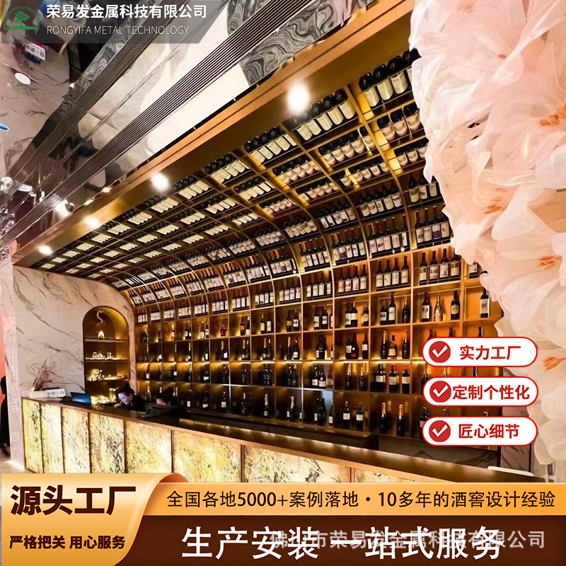 ホテルクラブライト高級カスタムステンレス鋼アークディスプレイワインキャビネット大規模ステンレス鋼アークワインラック