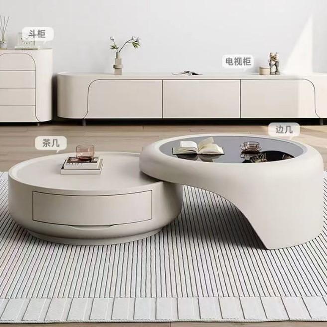 インターネットセレブクリームスタイル猫爪コーヒーテーブルモダンシンプルな小さなアパートのリビングルームクリエイティブライト高級大小ラウンドコーヒーテーブル組み合わせ