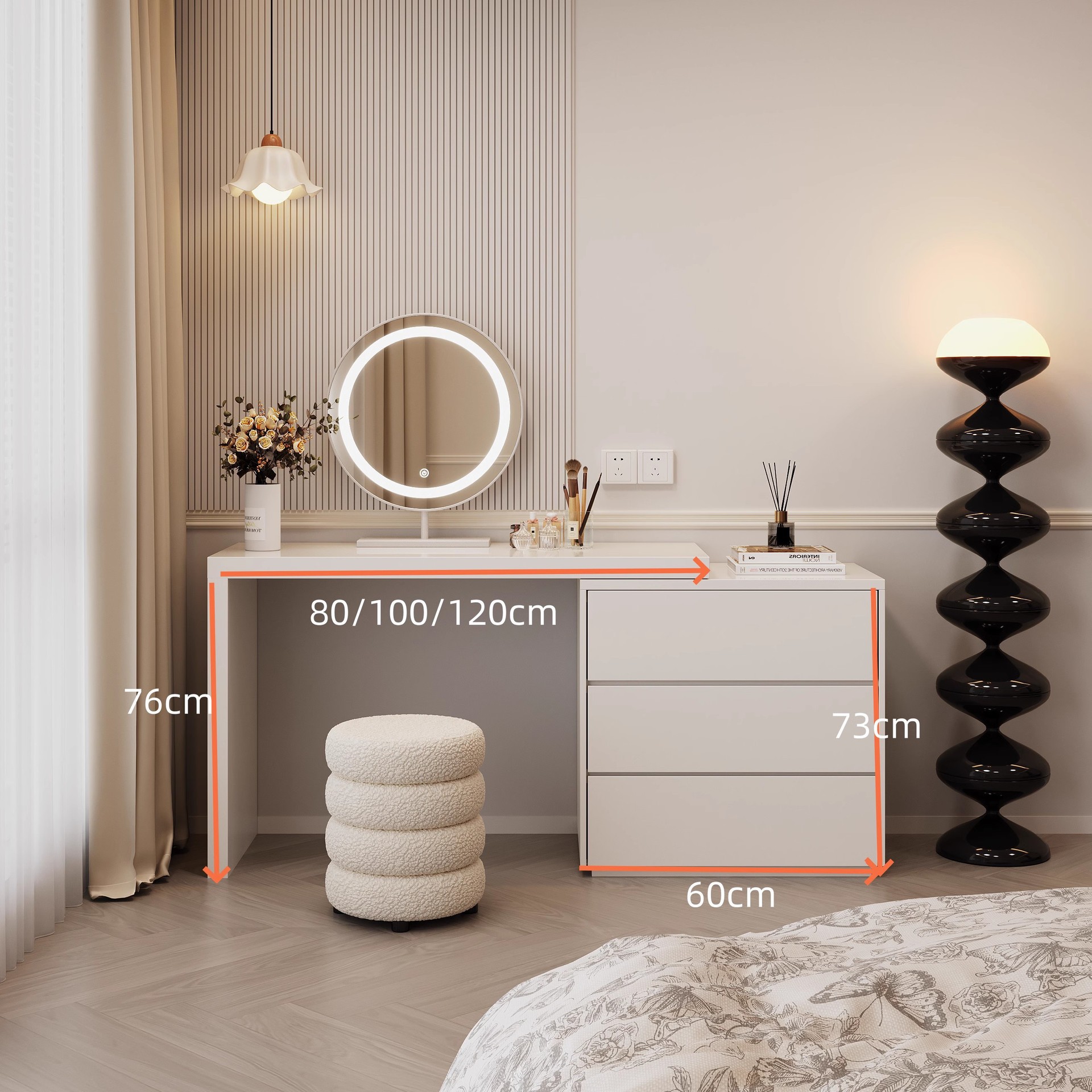 ライト付きミラー、バニティミラー、デスクトップデスクトップ化粧鏡、ホームベッドルームスタイル、女子寮、大型正方形ミラー