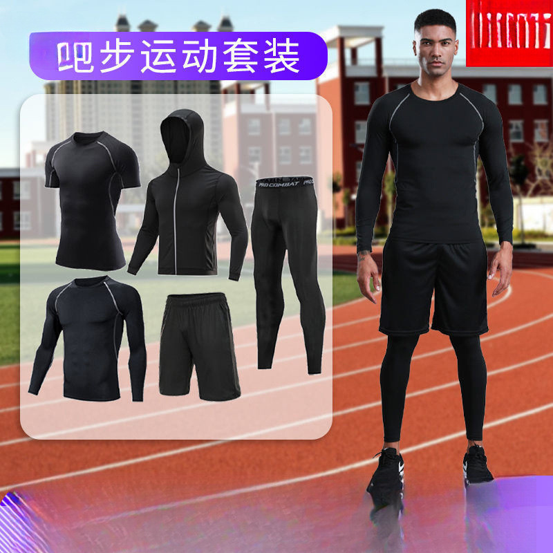フィットネスウェア メンズスーツ 速乾性伸縮性タイツ 朝ランニング ナイトランニング トレーニング バスケットボールトレーニング スポーツ アウトドアランニング