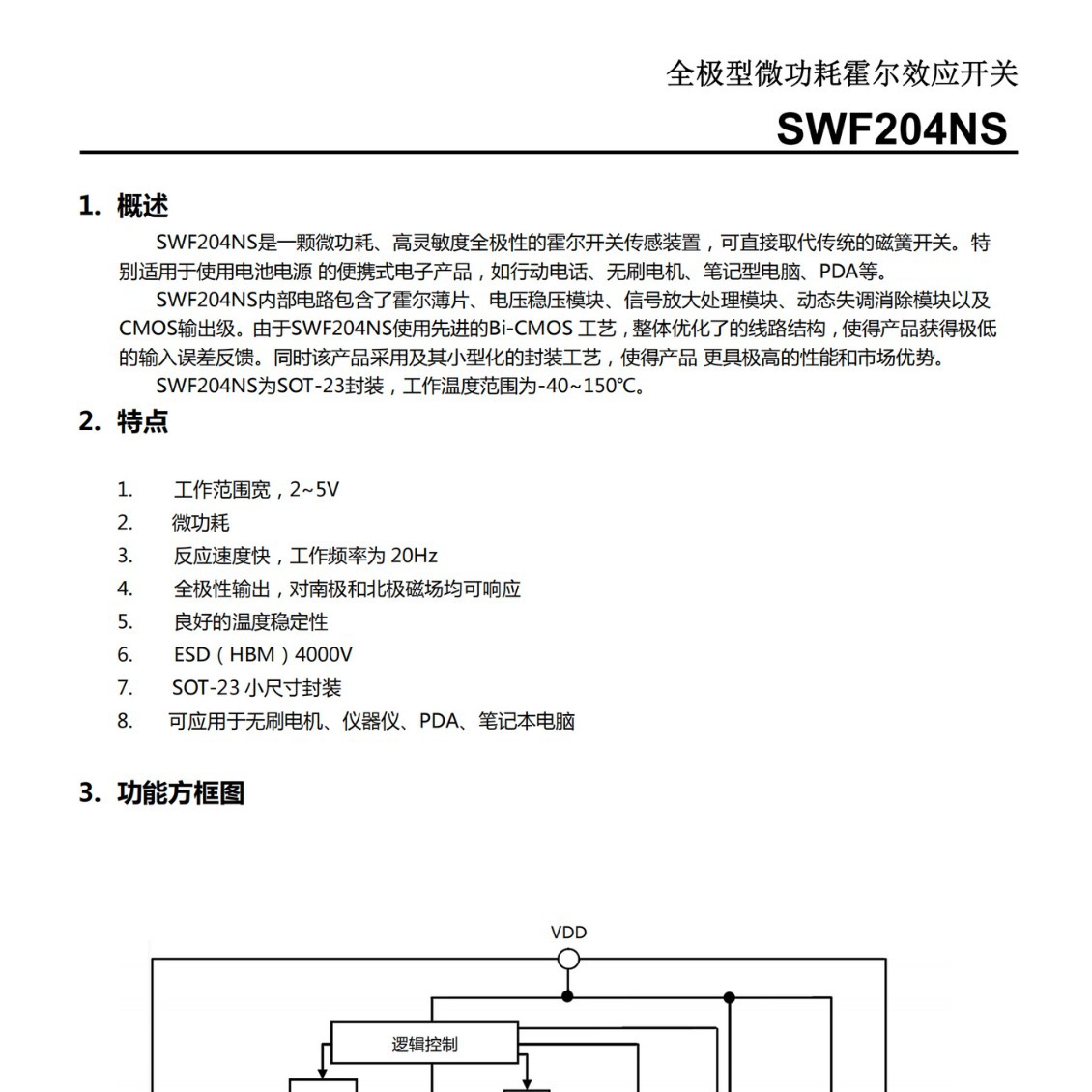SWF204NS SOT23パッケージ低圧マイクロ消費電力全極ホールスイッチチップ