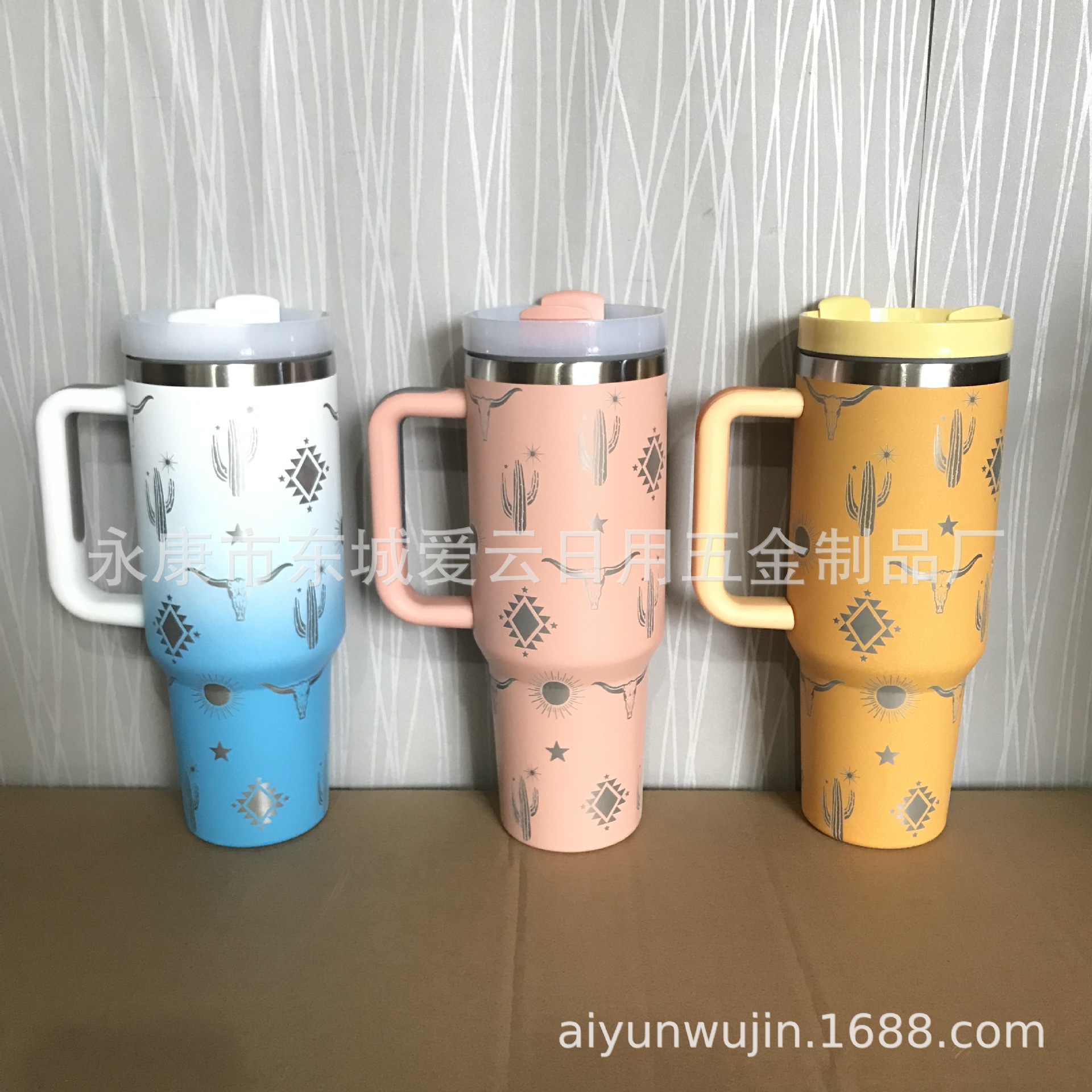 クロスボーダー40オンス牛頭レーザー氷覇自動車カップハンドルビールカップステンレスハンドル付き車載コーヒーカップ