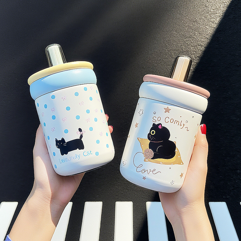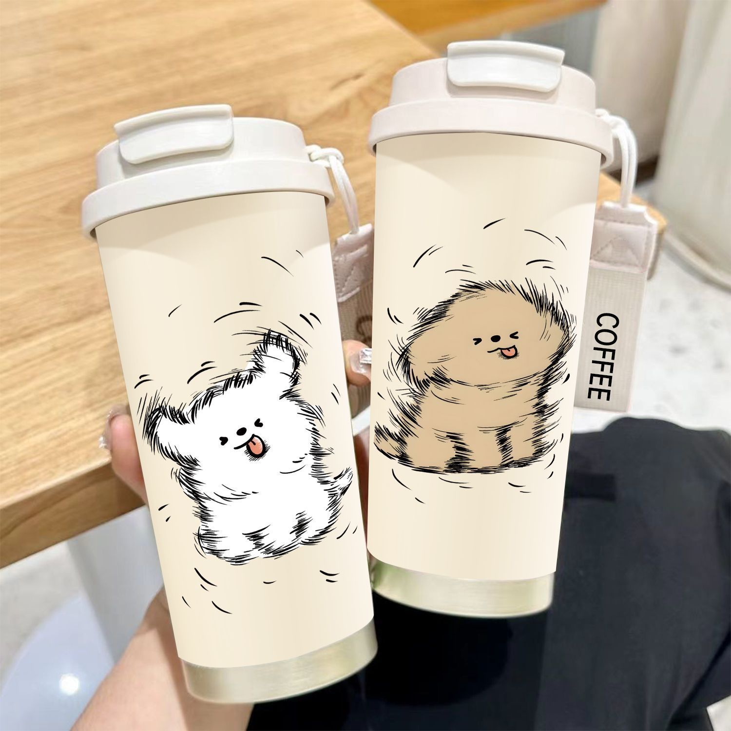首振り犬男女学生大容量保温カップストローシンプルダブル飲料カップ保冷カップコーヒーカップ保温