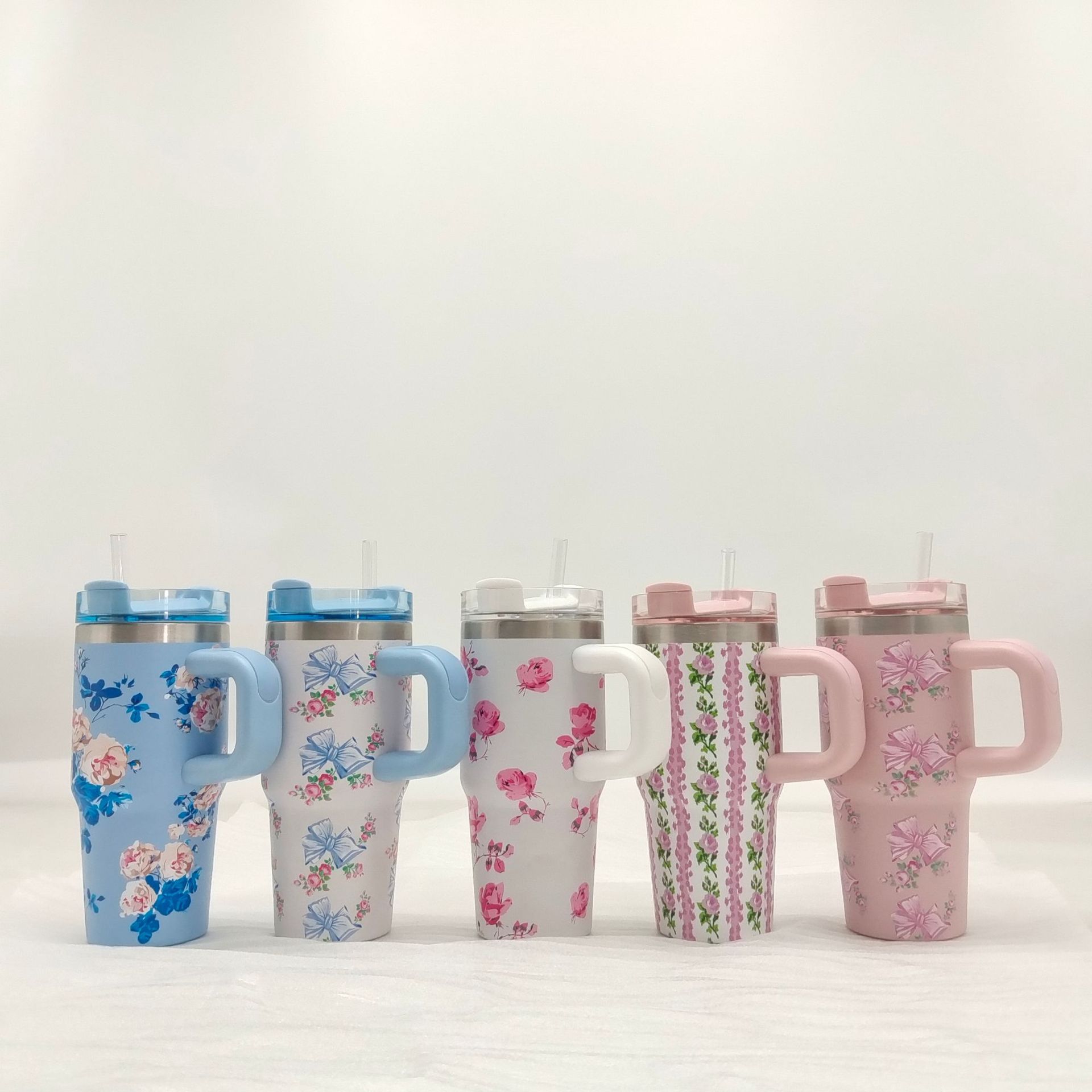 国境を越えたアマゾンの新しい 14 オンスアイスカップカーカップ 5D 第二世代カーカップフラワーカラーステンレス鋼魔法瓶カップ
