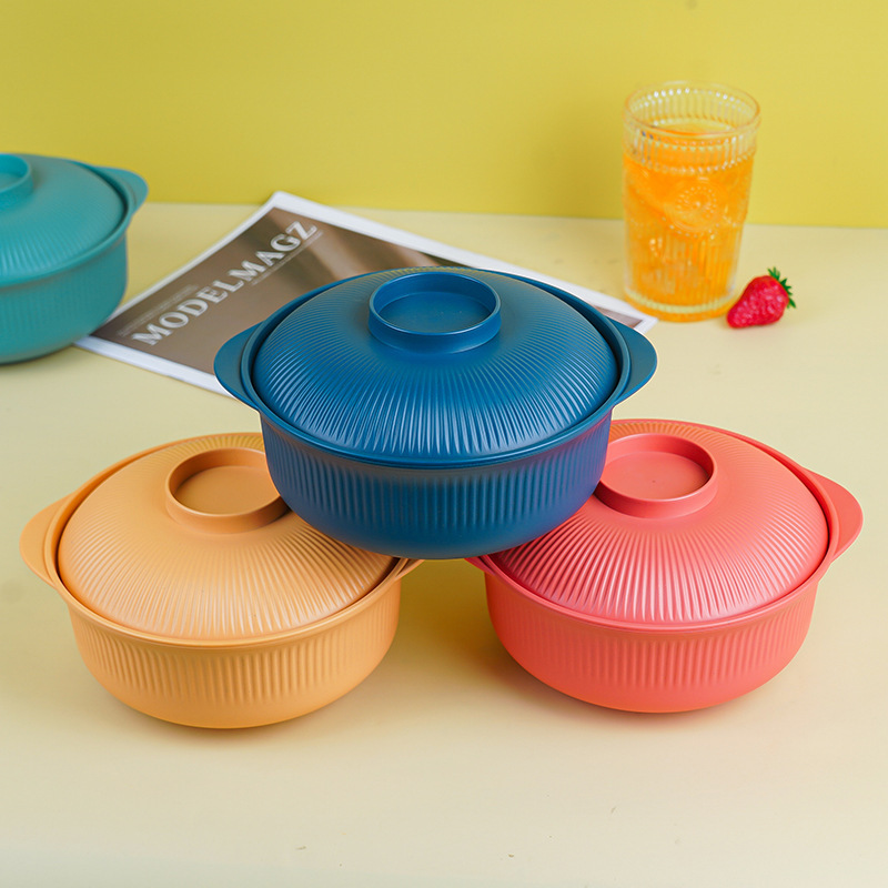 クロスボーダーのプラスチックの碗の泡の碗のアイデアは厚いストライプの碗の家庭用ppの土鍋のご飯の鍋のサラダの鍋の夜食の碗を厚くします。