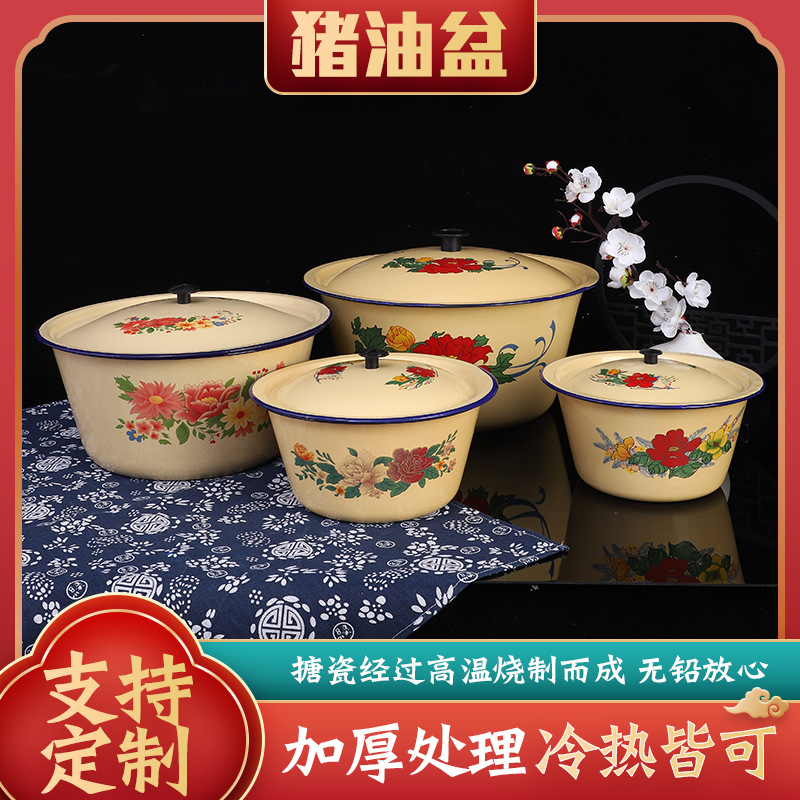 豚油盆卸売りレトロな古い豚油盆スープ鉢レトロな黄色洗面器エナメル古い盆エナメルボウル