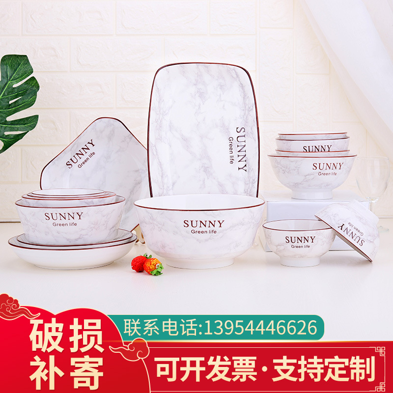 厂家批发大理石纹餐具碟子碗套装家用碗碟组合做饭盘子米饭碗