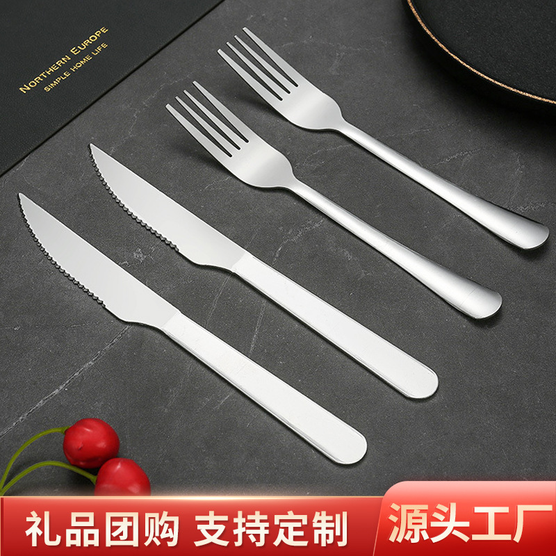 410ステンレスナイフとフォーク家庭用食器デザートナイフとフォークセット西食器ホテルのステーキナイフとフォークはロゴを印刷できます。