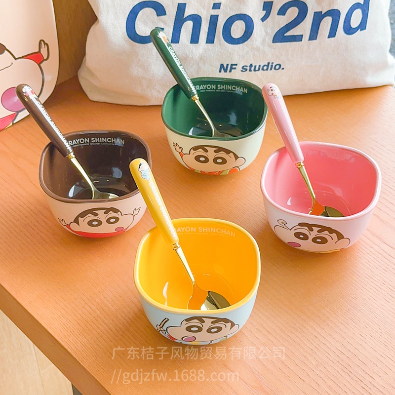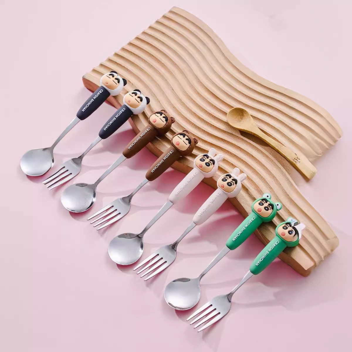 クレヨンしんちゃんスプーンフォーク家庭用ステンレス鋼フォークスプーンセットかわいい子供セラミックハンドルスプーンフルーツフォーク