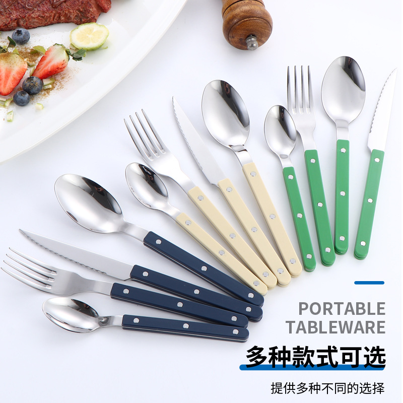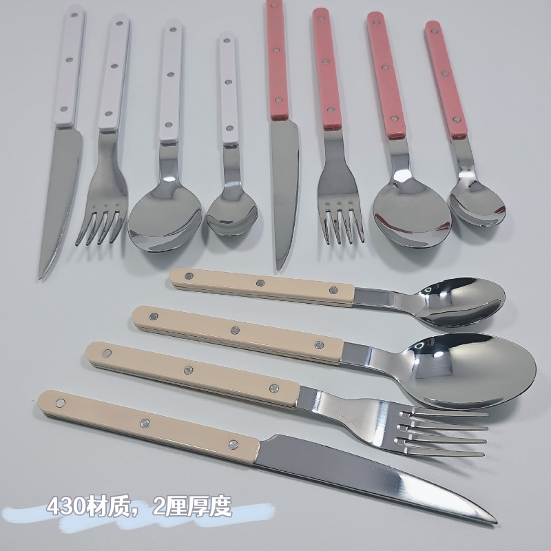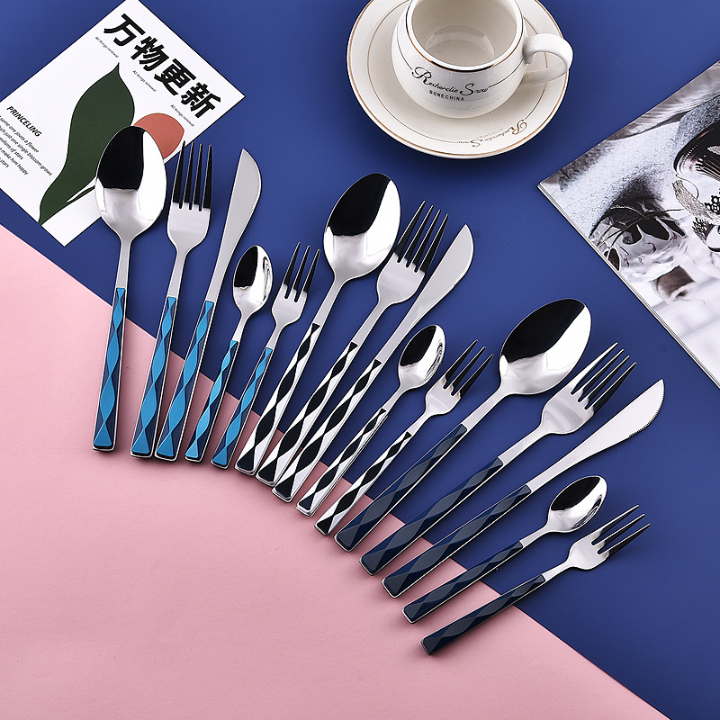 430ステンレス挟み柄洋式食器サンズシリーズシンプル国潮风洋食ナイフフォークスプーン食器セット