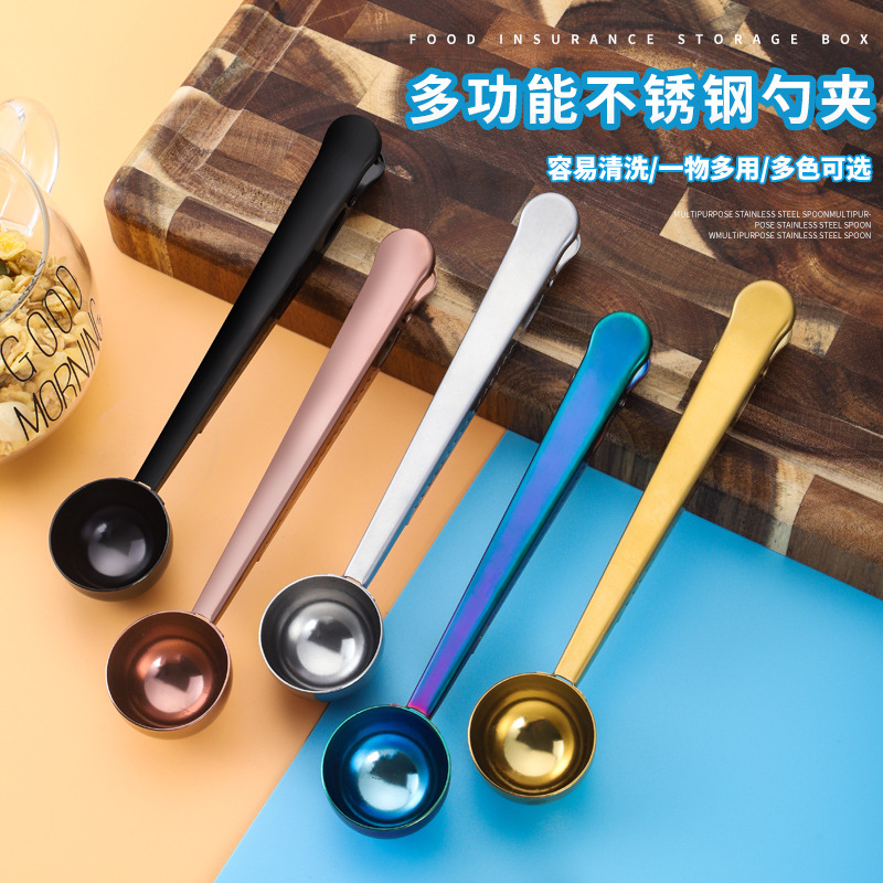 430コーヒースプーンクリップ付き茶葉シール調味スプーンクリップシールシリアルクリップスプーンステンレス粉ミルク計量スプーン
