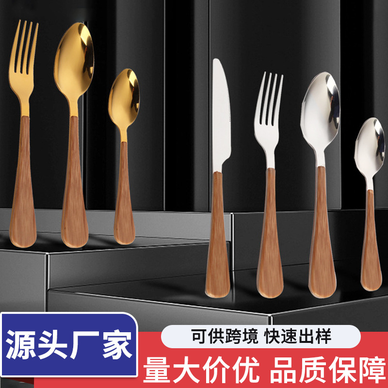 410ステンレス挟み木柄洋食ナイフフォークスプーン新洋式クリエイティブスプーンフォークナイフ厚金メッキ食器
