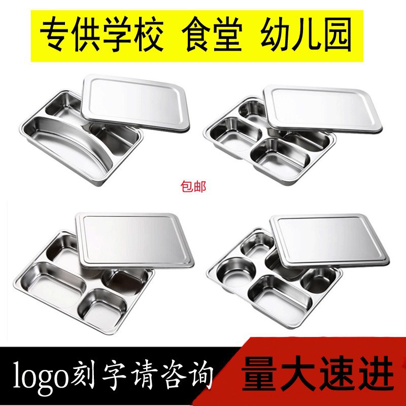 卸売り304ステンレス皿5格4格学生食堂蓋付き皿子供用ファストフード皿弁当箱