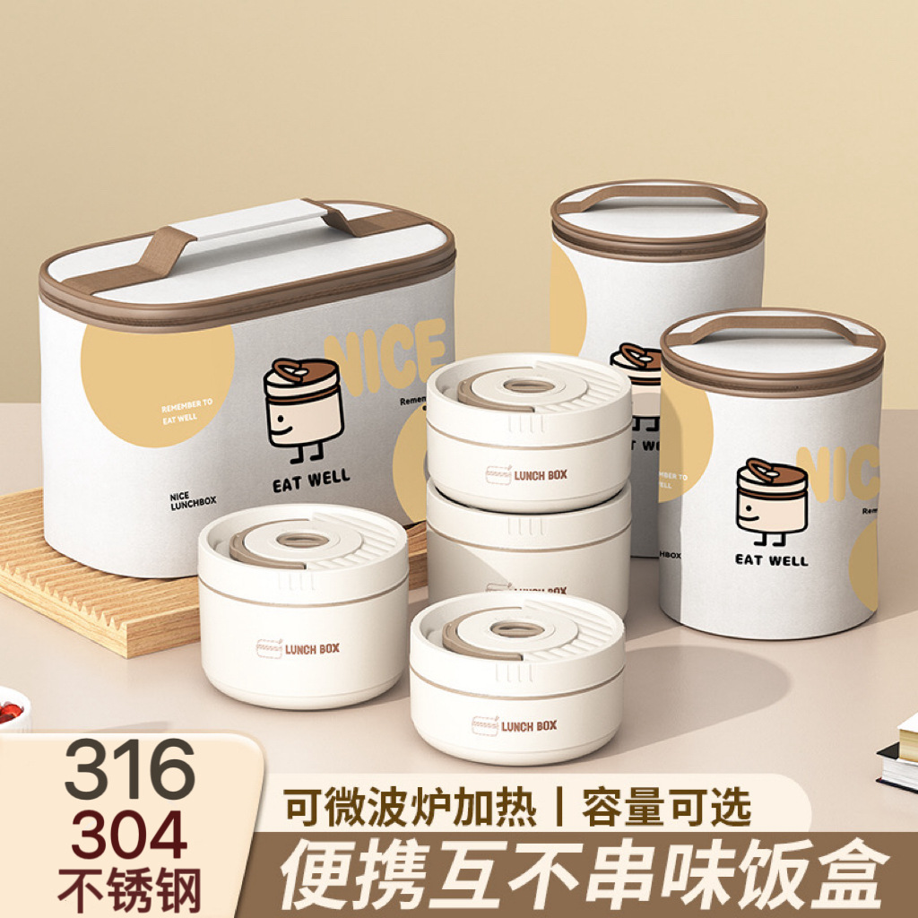 316 ステンレス鋼多層電子レンジ断熱弁当箱セット蓋付きラウンドスープボウル学生ポータブル弁当箱クロスボーダー