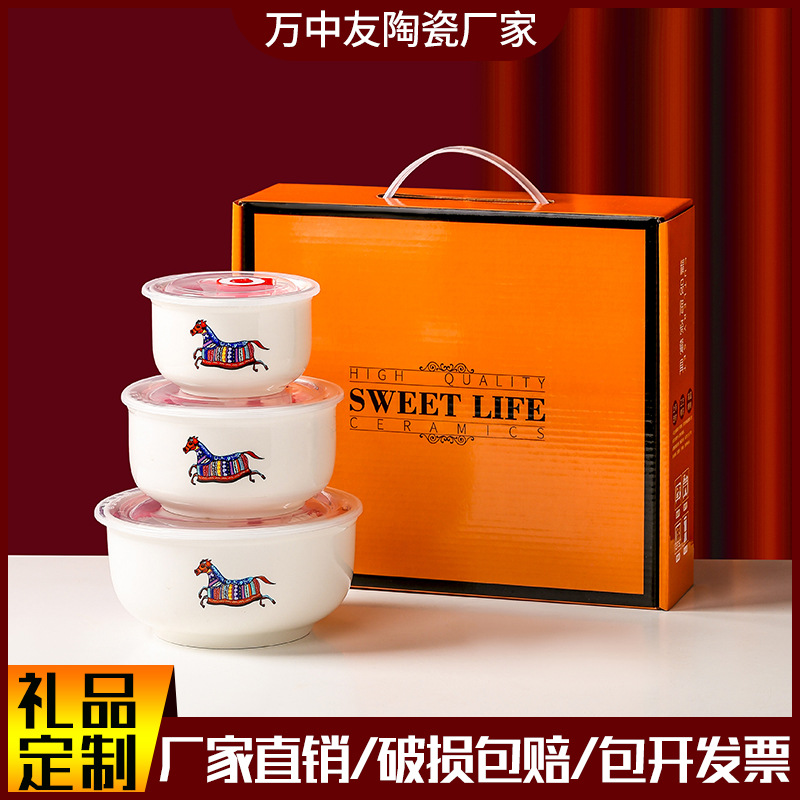 陶磁器の鮮度保持碗の3点セットの密封碗の贈り物碗セットの開業活動の贈り物は卸売りのお土産を贈呈します。