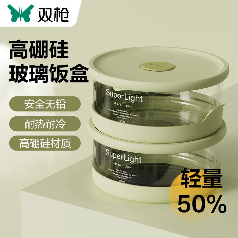 二銃の弁当箱の新鮮な箱の保温弁当箱のガラスの食品級の弁当箱は電子レンジの箱に入ることができて卸売りします。