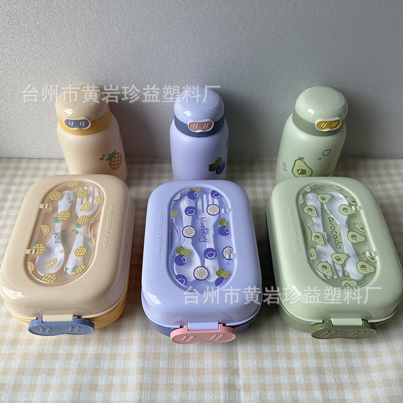 Lunch box子供可愛いランチタッパー水筒付き小学生二重弁当箱お弁当箱コップ