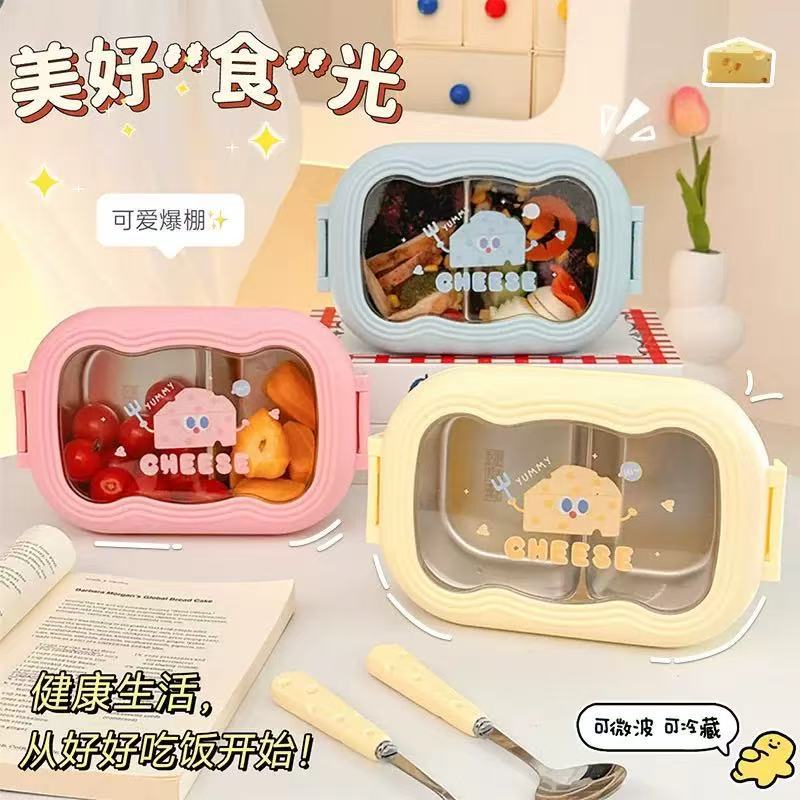 かわいいポータブルチーズ断熱ランチボックススナップコンパートメント 304 ランチボックス学生ランチボックスランチボックス鮮度保持