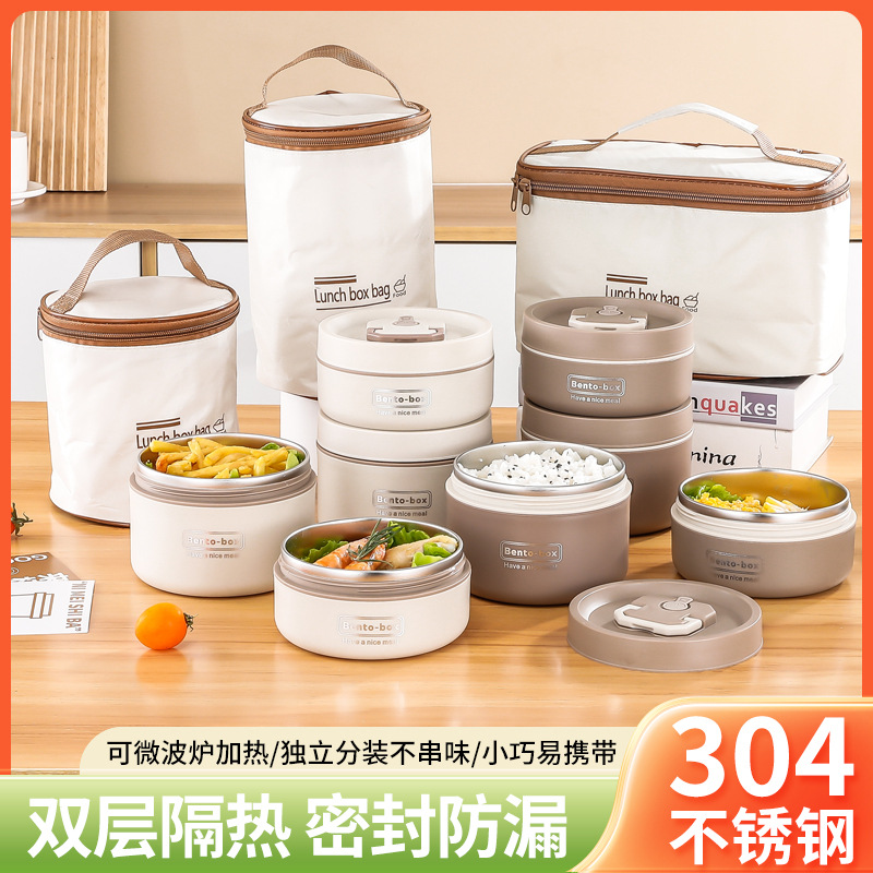 304ステンレス携帯弁当箱密封円形保温弁当箱弁当箱サラリーマン学生弁当箱付き