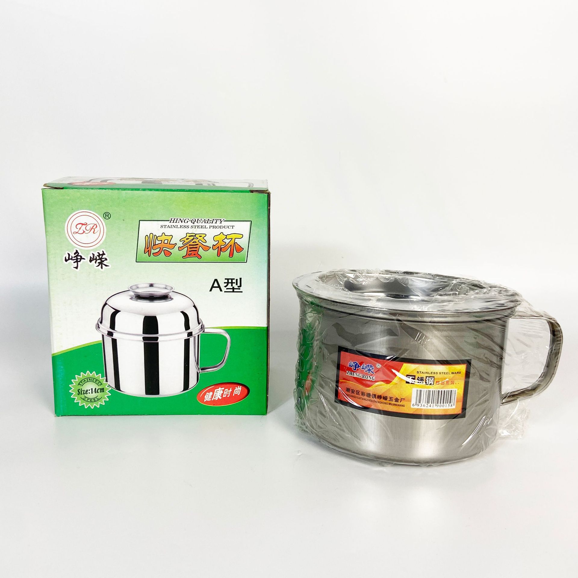 多層ステンレスのファーストフードのコップの柄は学生のカップラーメンの碗の工場の食堂の円形の食事の筒をかぶせます。