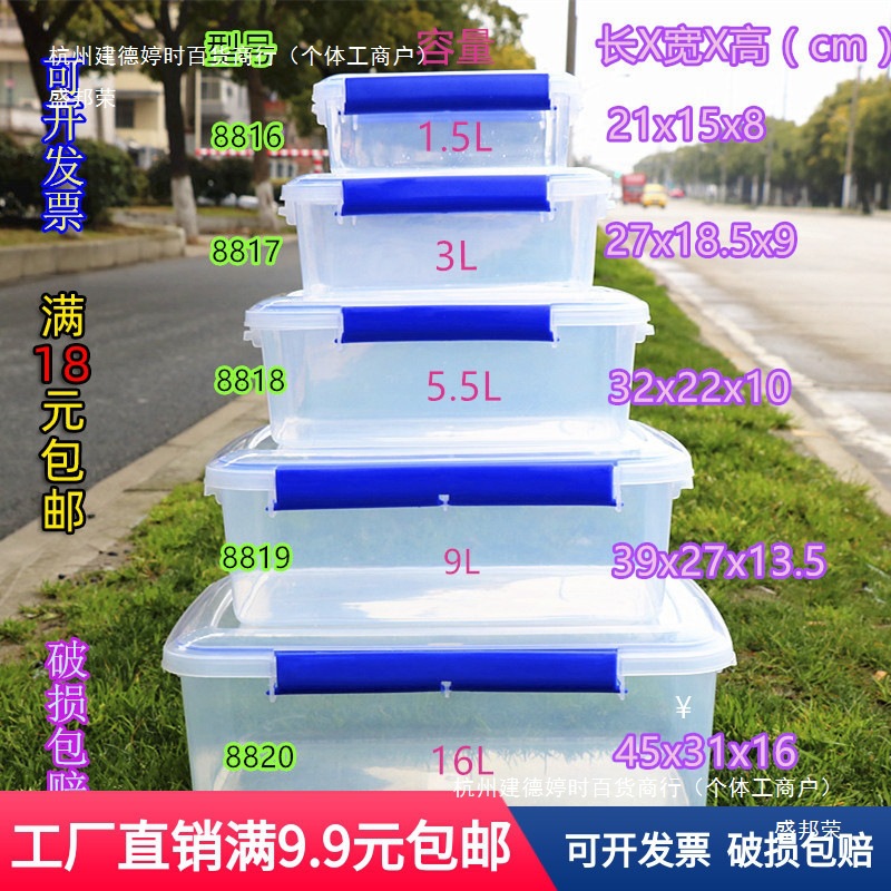 保冷ボックス透明プラスチックボックス長方形密封ボックス冷蔵庫冷蔵食品収納ボックス業務用カバー付き大型サイズ